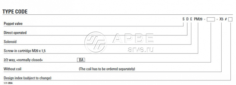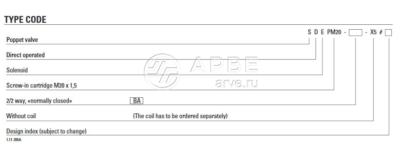 Соленоидный клапан с тарельчатым клапаном SDEPM20-BA-X5 Wandfluh