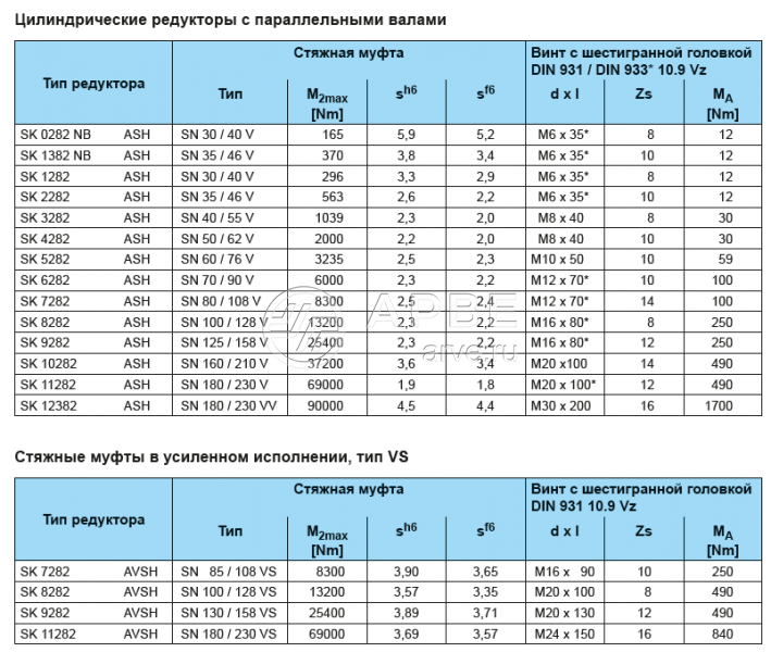Использование стяжных муфт особенно рекомендуется для редукторов в исполнении с полым валом для более удобного и легкого монтажа. Длина части вала приводного механизма, которая вставляется в полый вал редуктора, должна при этом совпадать с длиной полого вала (mH). Диаметр вала может устанавливаться согласно ISO h6 или f6. (f6 = более простой монтаж). Материал вала приводного механизма должен иметь минимум один предел текучести Re = 360 N/mm2, чтобы могло образовываться усилие для создания фрикционного замыкания и не возникали остаточные деформации.
