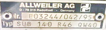 • SUB 140 R46 насос № E03244/042/95 ALLWEILER