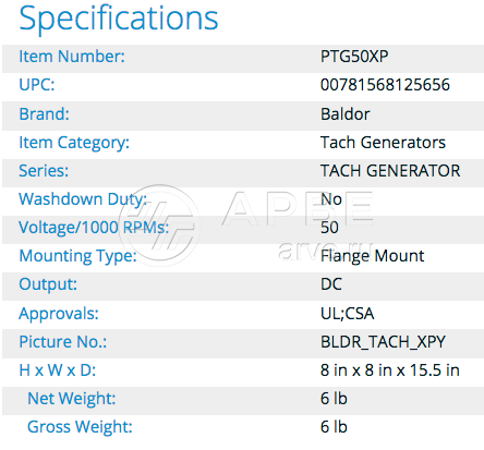Тахогенератор 7BPTG50XP PTG50XP Baldor - купить в компании АРВЕ. Чтобы узнать условия доставки, скачать прайс-лист, каталог или инструкцию, получить консультацию по всем возникающим вопросам, обращайтесь к нашим менеджерам удобным вам способом.
