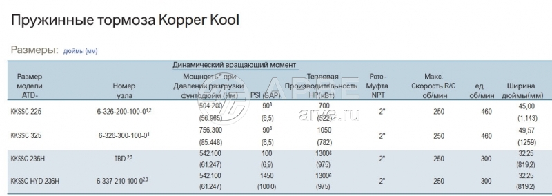 Тормоза Kopper Kool представляют собой самую последнюю конструкцию с очень высокой теплоотдачей для работы с максимальным натяжением. Уровень крутящего момента прямо пропорционален давлению воздуха, что обеспечивает возможности для более точного контроля непрерывного скольжение тормоза.