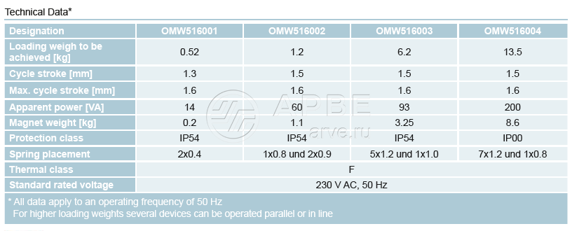 Vibration magnet B-OMW516001 / 24040003 230V; 1,3mm, 3000/Min, 14VA Kendrion