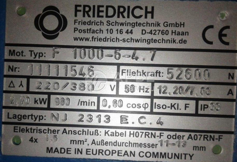 Вибродвигатель F1000-6-4.7 n 11111546 Friedrich Schwingtechnik