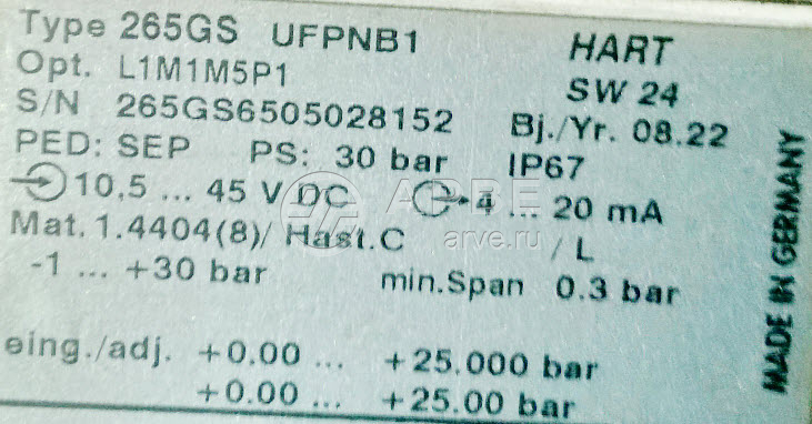 • Вихревой расходомер 265GS UFPNB1 sn 265GS6505028151 ABB