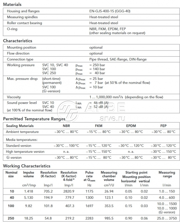 Винтовой расходомер серии SVC KRACHT, диапазон измерений 0,4…3750 л/мин, измерительное соотношения 1:150, рабочее давление до 400 бар