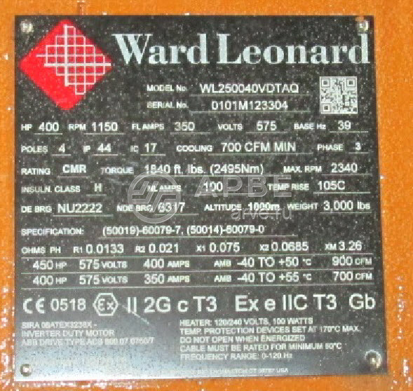 • WL250040VDTAQ двигатель № 0101M123304 Ward Leonard