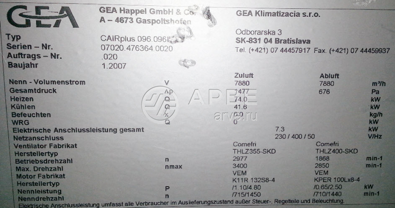 Запасные части к установке GEA CAIRplus 096 sn 07020.476364.0020