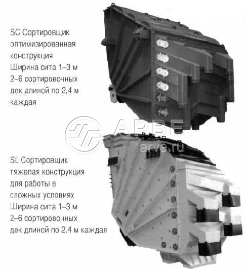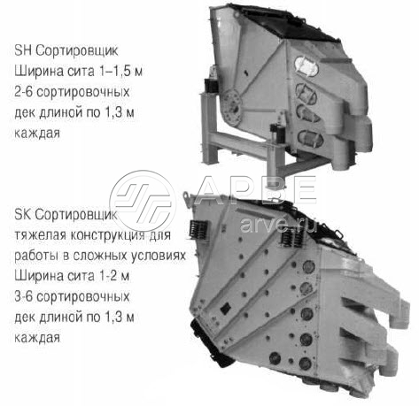 Сортировочная система Mogensen Sizer® представляет собой совокупность от 2 до 6 сортировочных дек, расположенных одна над другой и имеющих различный наклон, причем размеры отверстий сита уменьшаются по направлению сверху вниз. Удобныедля обслуживания ситовые полотна, расположенные в компактном корпусе, приводятся в колебательные движения с помощью двигателей-вибраторов или виброгенераторов.В то время как мелкие фракции обрабатываемого материала почти вертикально проходят через отверстия сита на верхних деках, более крупные компоненты отсеиваются из общего потока.