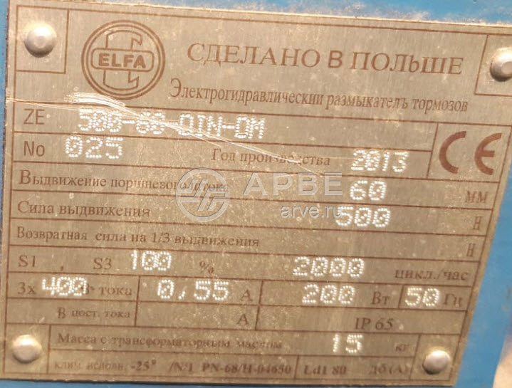 ZE500-60-DIN-DM Электрогидравлический размыкатель тормоза Ema-Elfa
