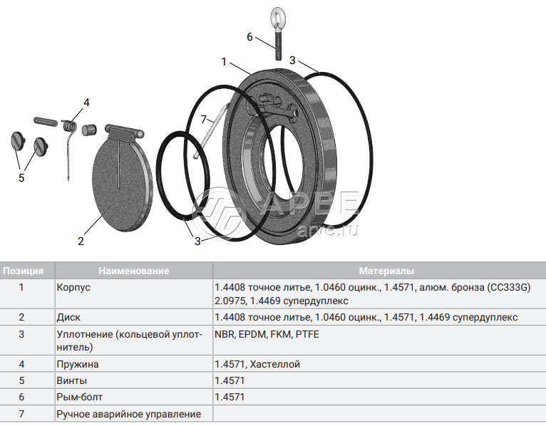 • Материалы корпуса: 1.0460, оцинкованная литая сталь l 1.4408, точное литье l 1.4571, кованый l 2.0975, бронзовое